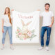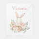 Adorable personalised watercolor bunny in a basket fleece blanket, Any âge would love this snuggly bunny blanket. Pinks with blush and white flowers mixed with eucalyptus and mixed greens. So sweet. A great gift for birthdays or Christmas.