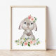 Cute Bunny, Rabbit, Pink Flowers, Girl Nursery Poster