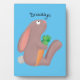 Cute bunny rabbit sitting with carrot cartoon plaque