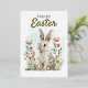 Send warm wishes this Easter season with our Cute Bunny Rabbit Spring Floral Happy Easter Photo Foil Holiday Card- perfect for sharing joy and love with your nearest and dearest. With its playful rabbit illustration and stylish gold foil accents, this kids Easter card is sure to make a lasting impression. The front has a watercolor illustration of a bunny rabbit surrounded by spring wildflowers and gold foil accents. Happy Easter is written in an elegant script typography. Customise it with a cherished family photo, kids photo, or baby picture. Personalise with a name, year, and message to create a unique and heartfelt greeting that will be treasured by all.