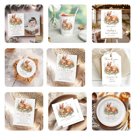 Cute Bunny & Watercolor Flowers Baby Shower Napkins