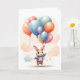 Cute Bunny with Balloons Watercolor Blank Greeting Card