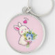 An adorable round keychain featuring a happy bunny hugging a colorful bouquet of flowers, with a sweet pink heart above its head. Soft pastel pink background and delicate details make it the perfect little reminder of love and joy. Ideal for Valentine's Day, birthdays, best friend gifts, or anyone who makes your heart bloom. High-quality acrylic with metal chain | Double-sided print | Lightweight and durable