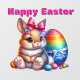 Cute Bunny with Bow and Colourful Easter Eggs