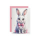 Cute bunny with pink bow birthday invitation