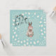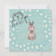 This Easter egg hunt invitation features a super adorable bunny rabbit in front of a sky blue background and white spots.
