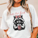Express your wild and playful side with our Cute but Feral Racoon shirt. Featuring an adorable racoon with a bow and a drink, along with the cheeky phrase "Cute but Feral," this design is perfect for those who embrace their inner wildness with a touch of cuteness. Ideal for casual outings or as a fun gift for friends who love quirky and unique apparel.