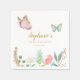 Sweet baby shower paper napkin featuring pink and mint butterfly with faux gold embellishments. There are flower garden at the bottom. Customise this product by adding your party information.