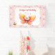 Cute Butterfly Pink Floral Girl 1st Birthday Banner