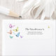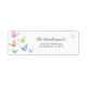 Butterfly return address labels featuring a plain white background that can be changed to any colour, cute pastel rainbow coloured butterflies, your name, and address.
