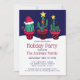 This cute, artistic, and fun Christmas holiday party invitation is perfect for the festive and cheery event. It features a hand-drawn red, green, black, and multicolored decorated cactus trees illustration; including garland, lights, ornaments, candy cane, star toppers, and a Santa Claus hat on top of a bed of white snow and a dark navy blue sky. It's artsy, festive, adorable, and unique; perfect for setting your party vibe!