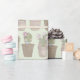 Wrapping paper with a whimsical design. 3 cute cactus all in a row with smiling faces sitting in a flowerpot each wearing some jewellery.