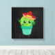 Cute Cactus in a Sombrero on Black Chalkboard Canvas Print