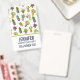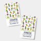 Name badge with a cute and fun pattern. Illustrations of different cactus, sitting in flower pots with cartoony happy smiling faces.