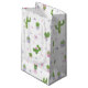 Cacti gift bags with cartoon prickly pear cactus, baby cacti in pots, boots, muffin cups, and star-shaped flowers. Colourful pattern - green, pastel pink and purple colours on a white background. Lovely for cacti party, including baby shower, birthday, and other events.