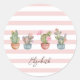 Cute Cactus Pink White Striped Pattern Classic Round Sticker