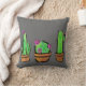An illustration of three cute cacti with pink flowers in little terracotta pots.