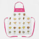 A cute pink Personalised monogram name apron with adorable watercolor cartoon desserts, cakes, pies and baking sweet treats pattern. An ideal gift for bakers and those that love cooking. Original artwork illustration by Catherine Sweetman