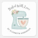 A cute blue cake mixer with flower decorates this baked with love sticker. Personalise it with your name. Designed for you by blackberry Boulevard.