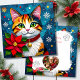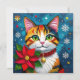 Cute Calico Cat with Poinsettias Custom Christmas Holiday Card