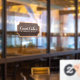 A decorative frame shows off your name or business name in a calligraphy style on this personalised window cling. Great for boutiques, bakeries, retail stores, pop-up shops and more. Art and design © 1201AM Design Studio