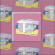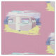 Cute pink camper on the beach digital art drawing for travel life lovers. Custom background colour.