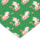 The grooming routine of a red and white striped candy cat can only end in tears...or peppermint hairballs. Green background pattern features fish skeletons and Christmas trees. Designed by Kaz Foxsen.