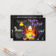 Cute Personalised Halloween Holiday Birthday Party Invitation. Features funny candy corns, creepy cauldron, cupcakes and a funky witches boot filled with candy.