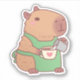 A doodle of a cute capybara with green apron making a latte by pouring milk to the coffee. Perfect for capybara and coffee lovers!