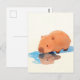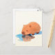 Add a splash of warmth to your day with this charming postcard featuring an adorable, chubby capybara. Rendered in a soft, painterly aesthetic, the illustration captures the creature leaning down to drink from a shimmering blue puddle. The scene is highlighted by a beautiful, rippling reflection in the water and a clean, minimalist background that makes the rich peach and orange tones of the capybara pop. The gentle lighting and peaceful composition evoke a sense of quiet nature wonder. This postcard is the perfect canvas for a handwritten "thinking of you" note or a serene mini-print to brighten up your desk or gallery wall. Whether it's traveling through the mail or pinned to a mood board, it brings a moment of zen to anyone who sees it.