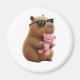 A cool capybara with a soft heart! This adorable magnet features a stylish capybara wearing sunglasses while hugging a pink teddy bear. High-quality 3D art, perfect for your fridge, locker, or any magnetic surface. A sweet little gift for capybara lovers!