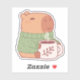 A cute capybara wearing a green cosy sweater while holding on to a cup of hot coffee. Perfect for capybara and coffee lovers! ♥