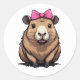 Cute Capybara with Pink Ribbon Bow Women Girls Classic Round Sticker