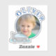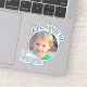 Cute Car Blue Round Frame Name and Photo Kids Sticker. Cute blue cartoon race car. Add your name and your photo.