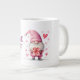 cute card with a cartoon pink gnome in love with a heart for the holiday in February on Valentine's Day