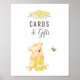 Cards & Gift sign for your guests for the gender reveal party. Cute teddy bear with a barrel of honey watching a cute honey bee buzzing about. Yellow florals at top.