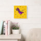 Cute cartoon angry purple dinosaur square wall clock