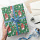 Cute penguin wrapping paper personalised with a name or any custom text. Great to gift wrap your presents for Christmas or the Holidays, featuring cartoon animals and winter illustrations in red and green colours.