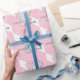 Cute cartoon baby elephant on a pink white polka wrapping paper
