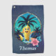 Cute cartoon banana on the tropical beach. golf towel