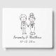 Cute Cartoon Bride Groom Black White Wedding Guest Book