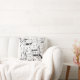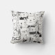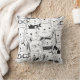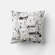 A cute bunny rabbit pillow features many white and black bunny rabbits with eye glasses, hair bows, sweaters, hats, even crowns!