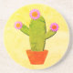 Cute Cartoon Cactus With Pink Flowers Painting Coaster