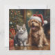 Cute Cartoon Cat and Dog Christmas Holiday Card