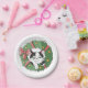 Cute Cartoon Cat in Christmas Wreath Paper Plate
