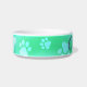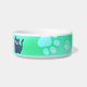 Cute Cartoon Cat on Green Pawprint Bowl