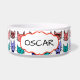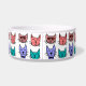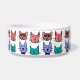 A personalised pet bowl for your cat. You can easily customise the name, change fonts and size of the text to suit, or even remove it altogether. The design features a pattern of cute, colourful cartoon cat's heads which would make a great gift for any pet lover, or for your own kitty cat.