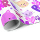 This cute design uses cartoon cats and the words 'purr' and 'meow' with doodle hearts and paw prints.