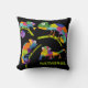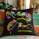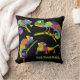 Create a fun personalised gift for fans of chameleons and other reptiles. This throw pillow features cartoon style illustrations of chameleons in bright and vibrant colours against a black background, and is ready to be personalised with a name or other text in lime green lettering.