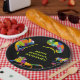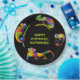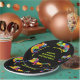 Add your own message to create personalised party supplies for birthday parties and other special events. These paper plates feature cute cartoon style illustrations of chameleons in bright and vibrant colours set against a black background. Your message appears in the centre in lime green lettering.
